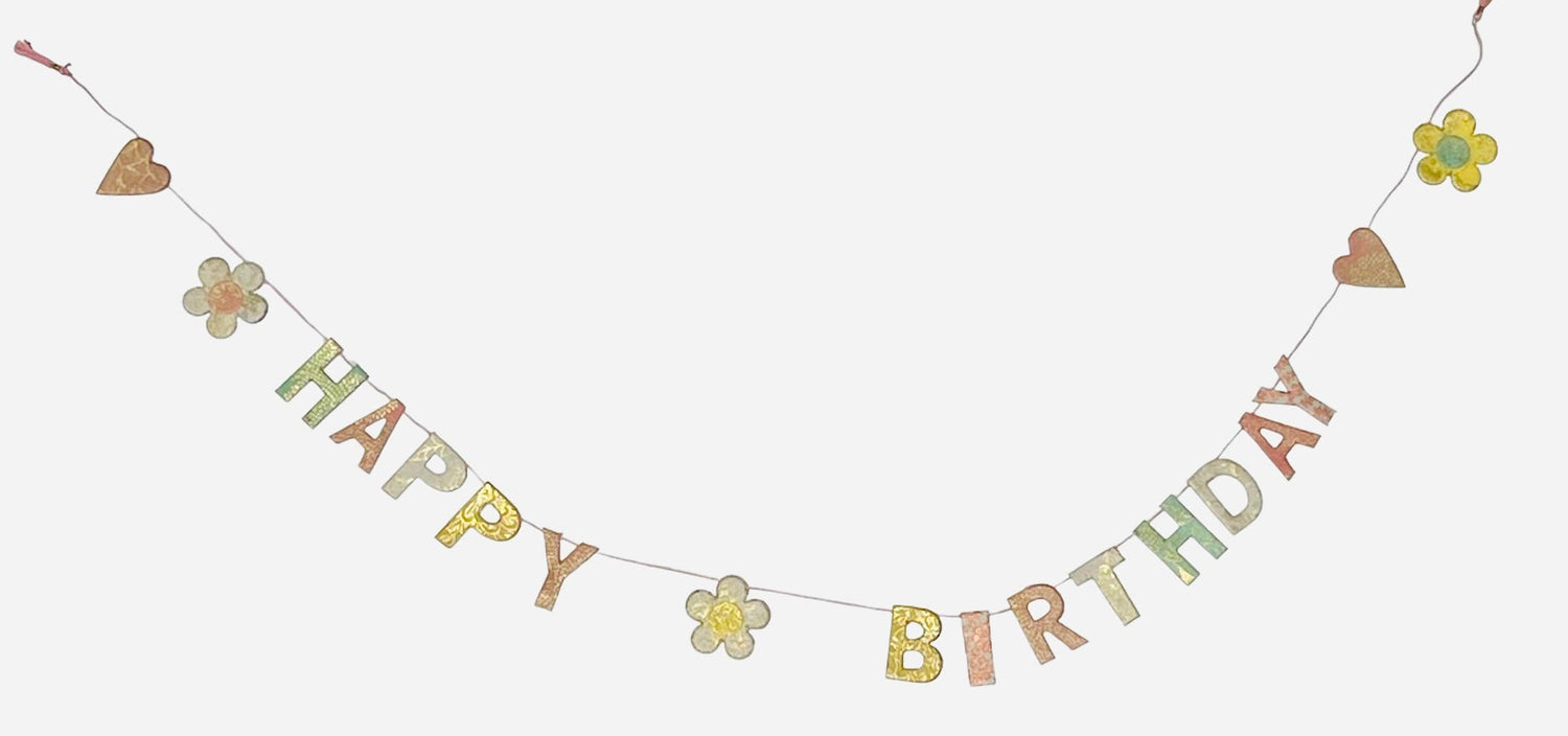 Celebrate birthdays with a touch of charm and sustainability with Giftsland's Mini Felt Garland. Handmade in Nepal, this delightful wall decor, is perfect for kids and babies. The product is adding a festive touch to your home no matter the season. Enjoy this eco-friendly decoration, made from the bark of the local Lokta plant, which promotes re-growth and contributes to a healthier planet.
