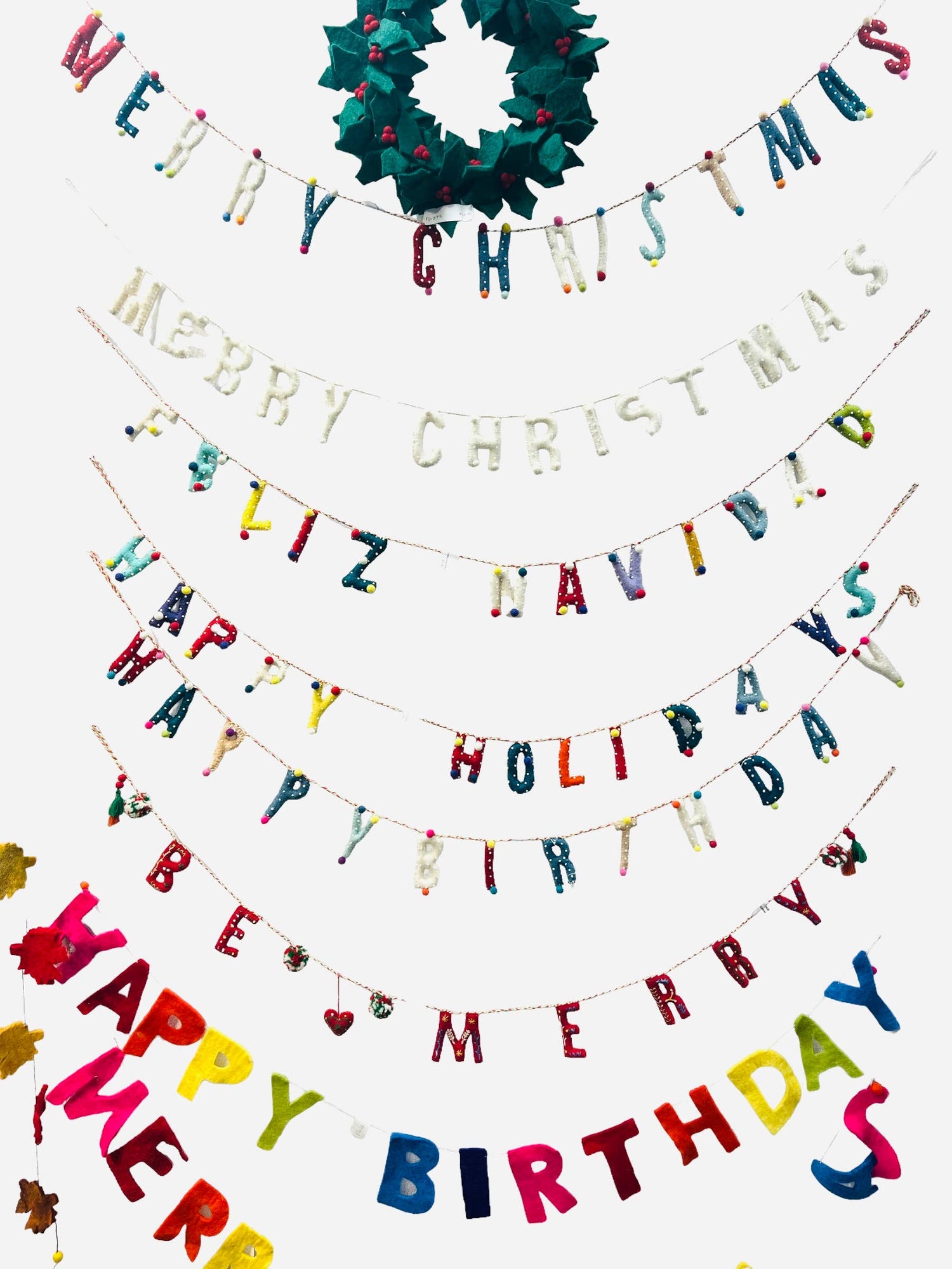 Heart felt birthday wishes with this felt happy birthday banner! 60" and handmade in Nepal by artisans.