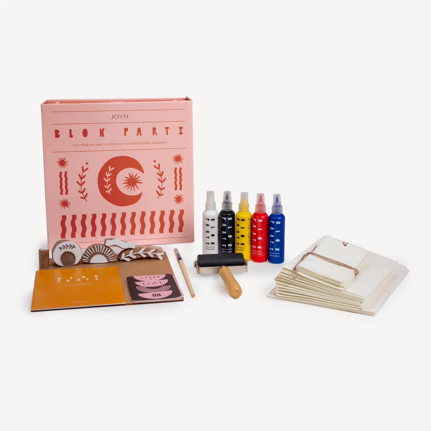 Everything you need to create your own custom block printed stationery! Inside this block printing kit, you’ll find all the tools you need to learn the art of block printing, including hand-carved wooden blocks, handmade paper stationery and five non-toxic block printing inks. No experience necessary - simply follow the easy steps in the guide and take a moment to slow down, get creative and enjoy the process.