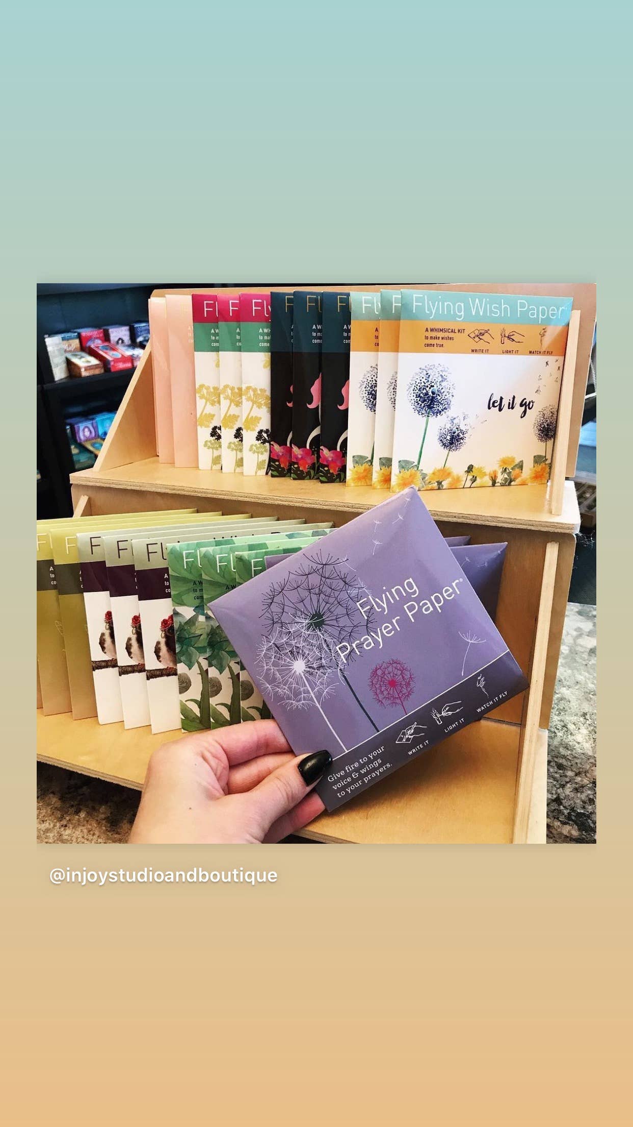 Flying Wish Paper creates a wishing activity to celebrate, empower and inspire. Write your wish on the special paper, light it on fire and watch as it flies to the heavens. Sounds magical, and it is! Such a special way to manifest a dream and send your desires into the universe. Give fire to your voice and wings to your prayers. "Write it! Light it! Watch it fly!"