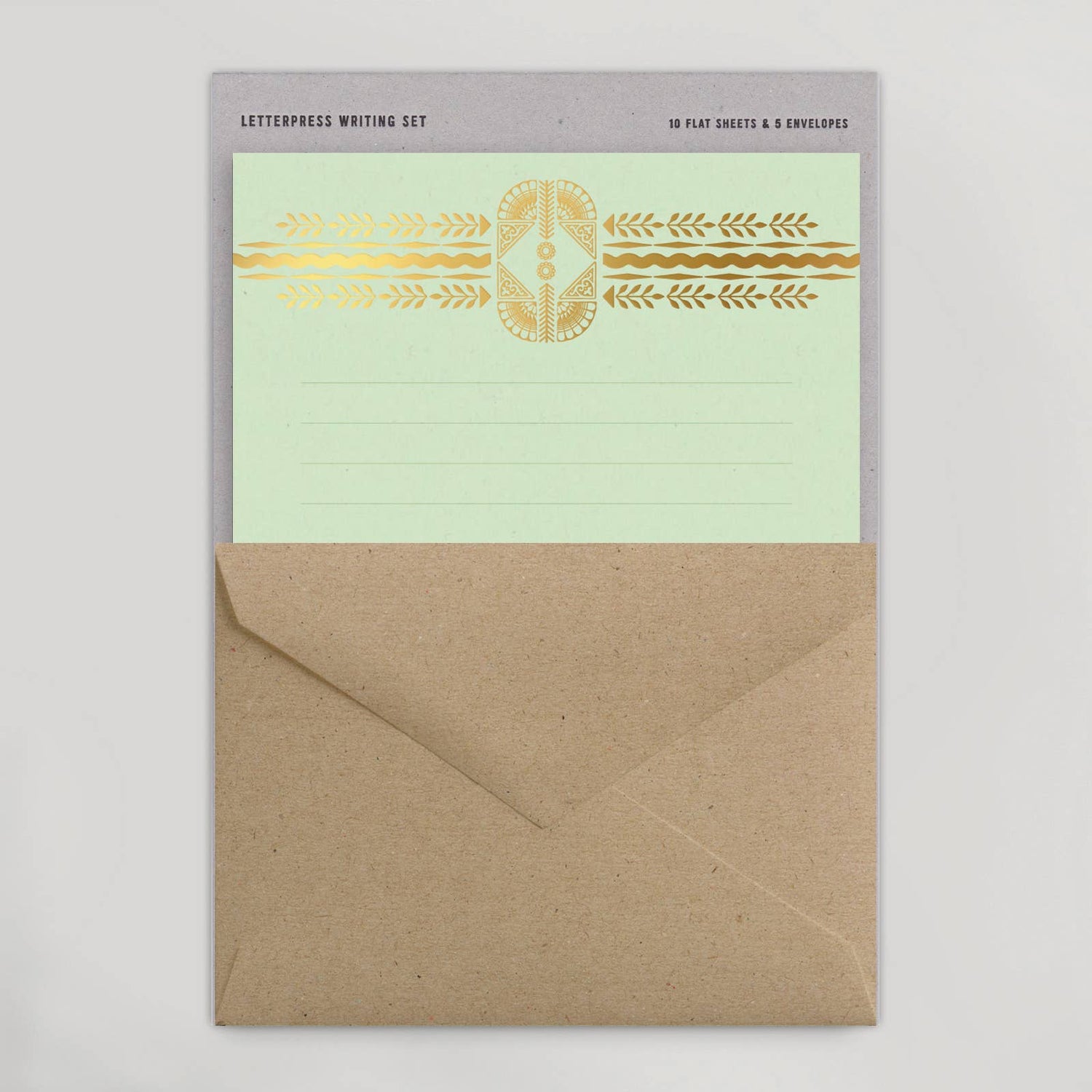 Letter writing set has 10 flat sheets & 5 envelopes.