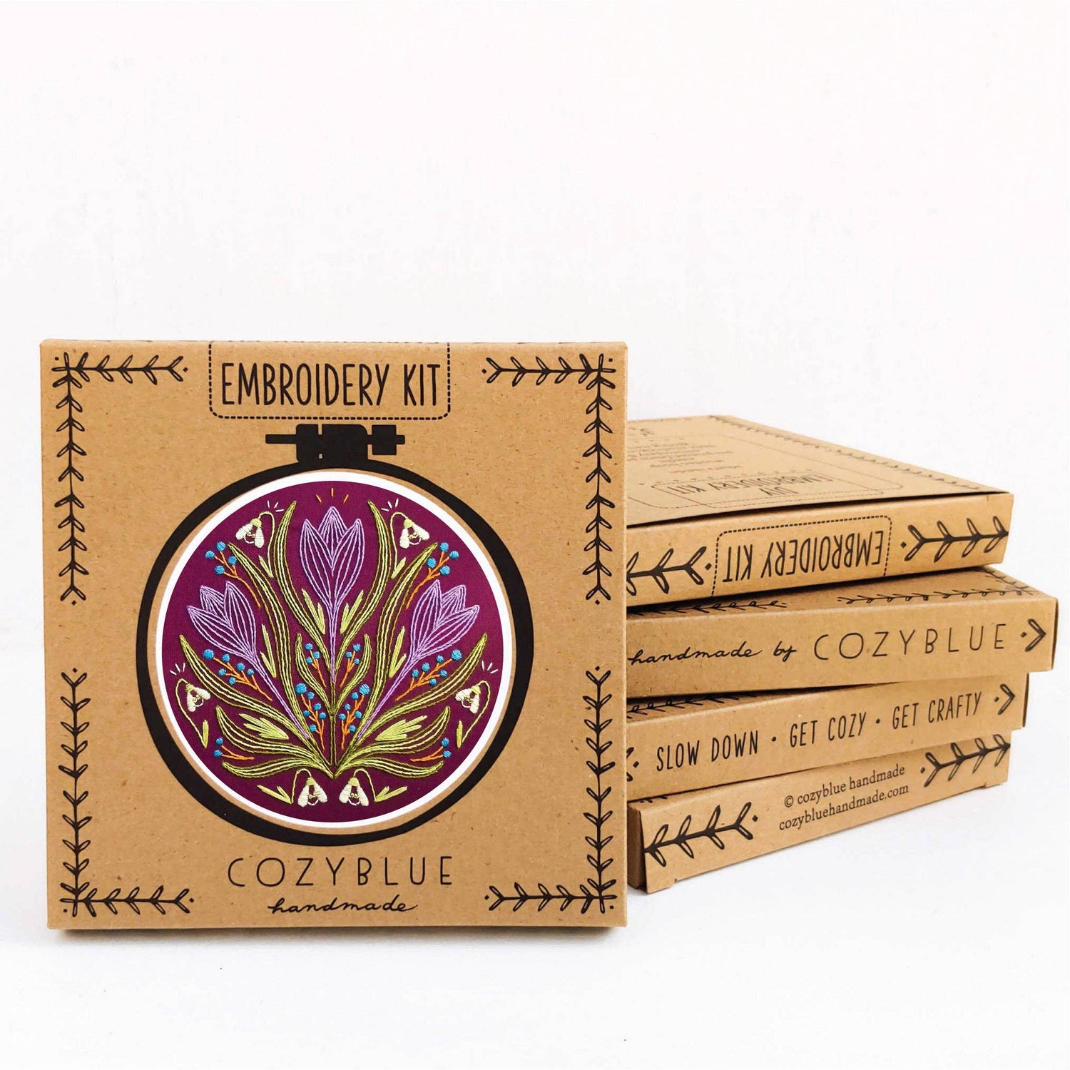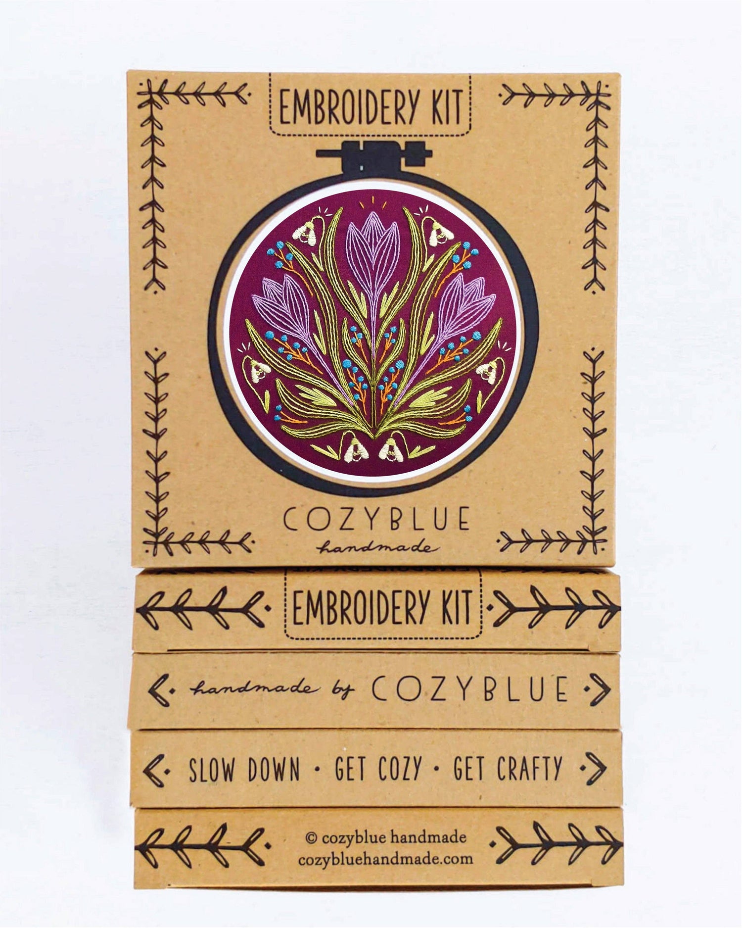 cozyblue embroidery kits include everything you need to create your own hand embroidered hoop.