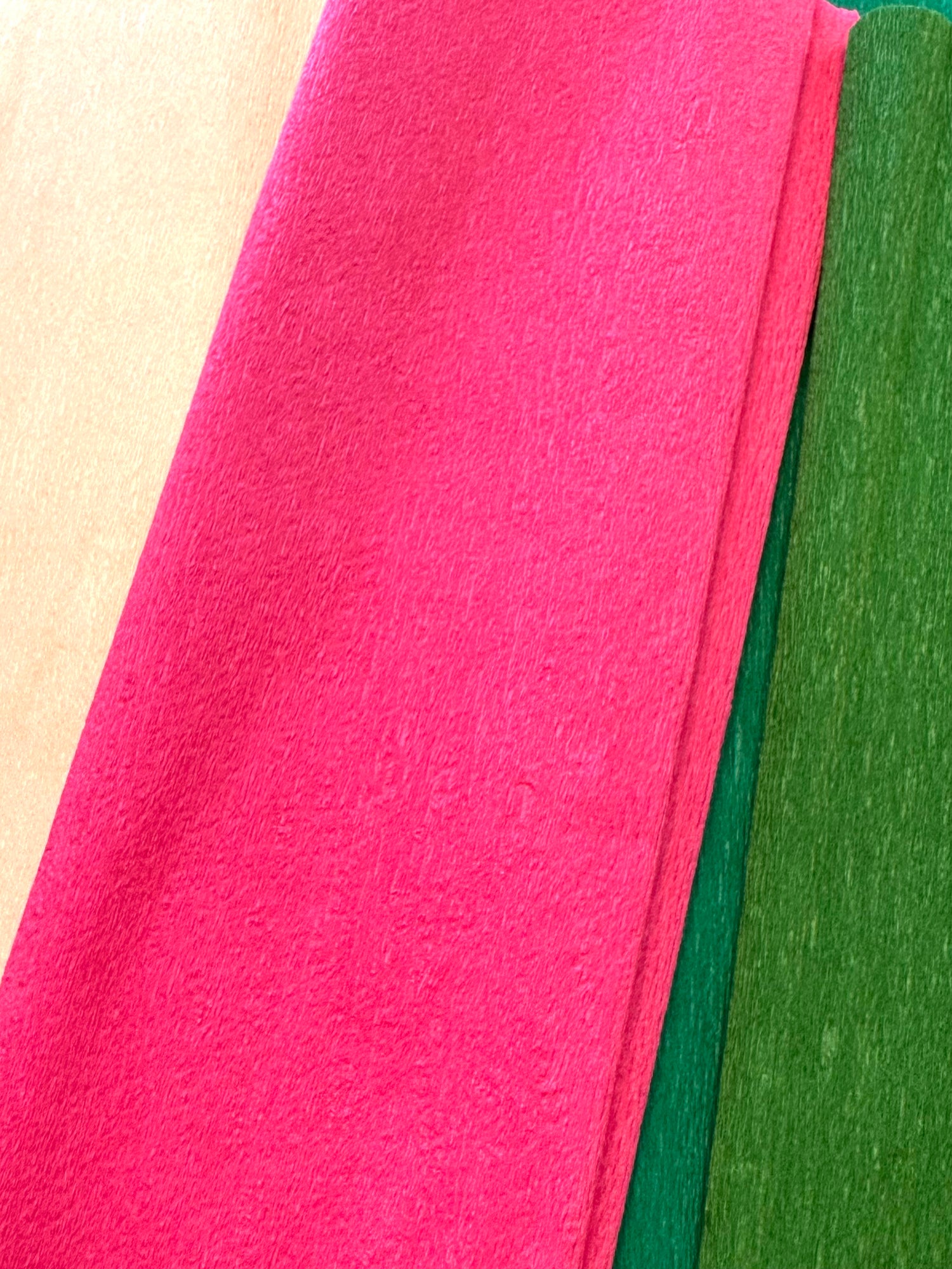 Old fashioned, extra fine (32 gm) crepe paper made in the USA on the original machines. This paper will run when wet and fade in direct sunlight.