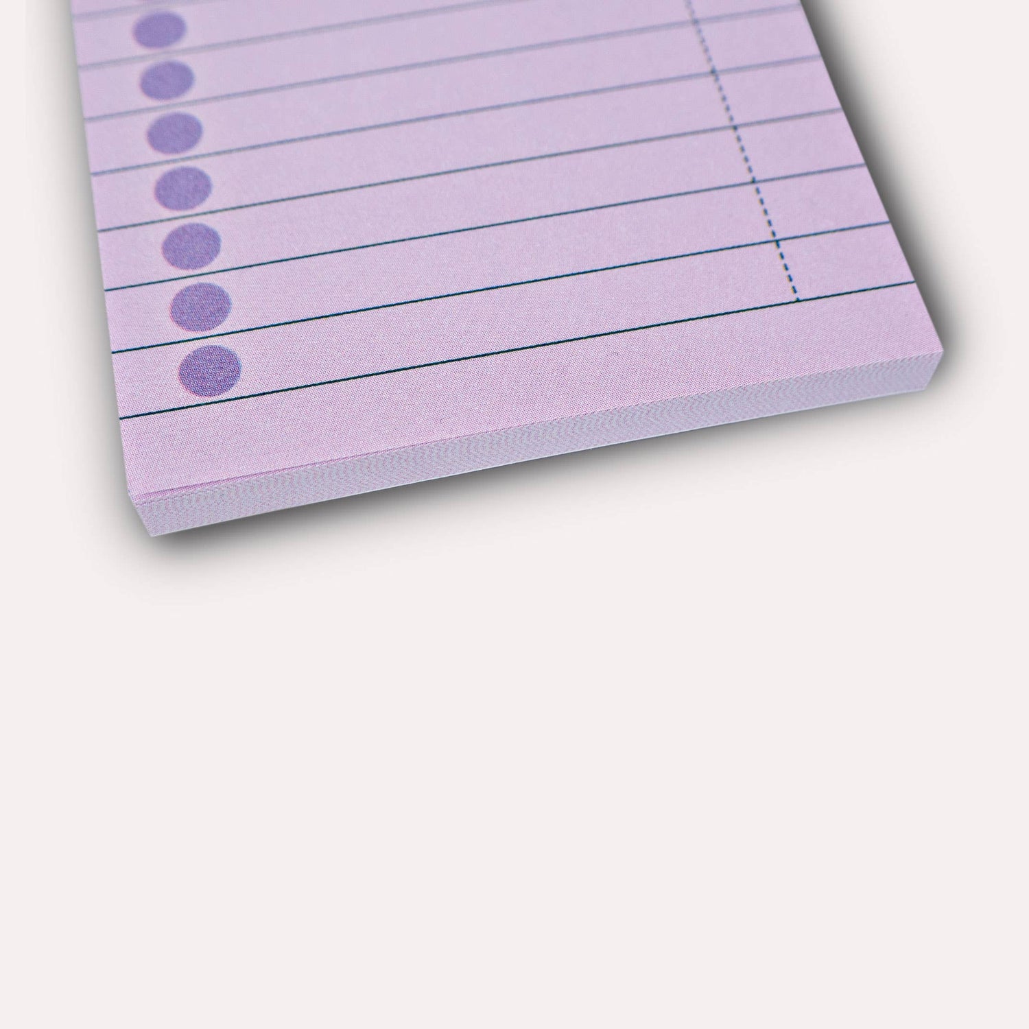 This is a pad of 50 sticky notes, measuring 7.1 x 10.2cms. They come packed in a biodegradable bag to ensure they arrive in pristine condition. They're made in the UK using 80gsm FSC certified paper.