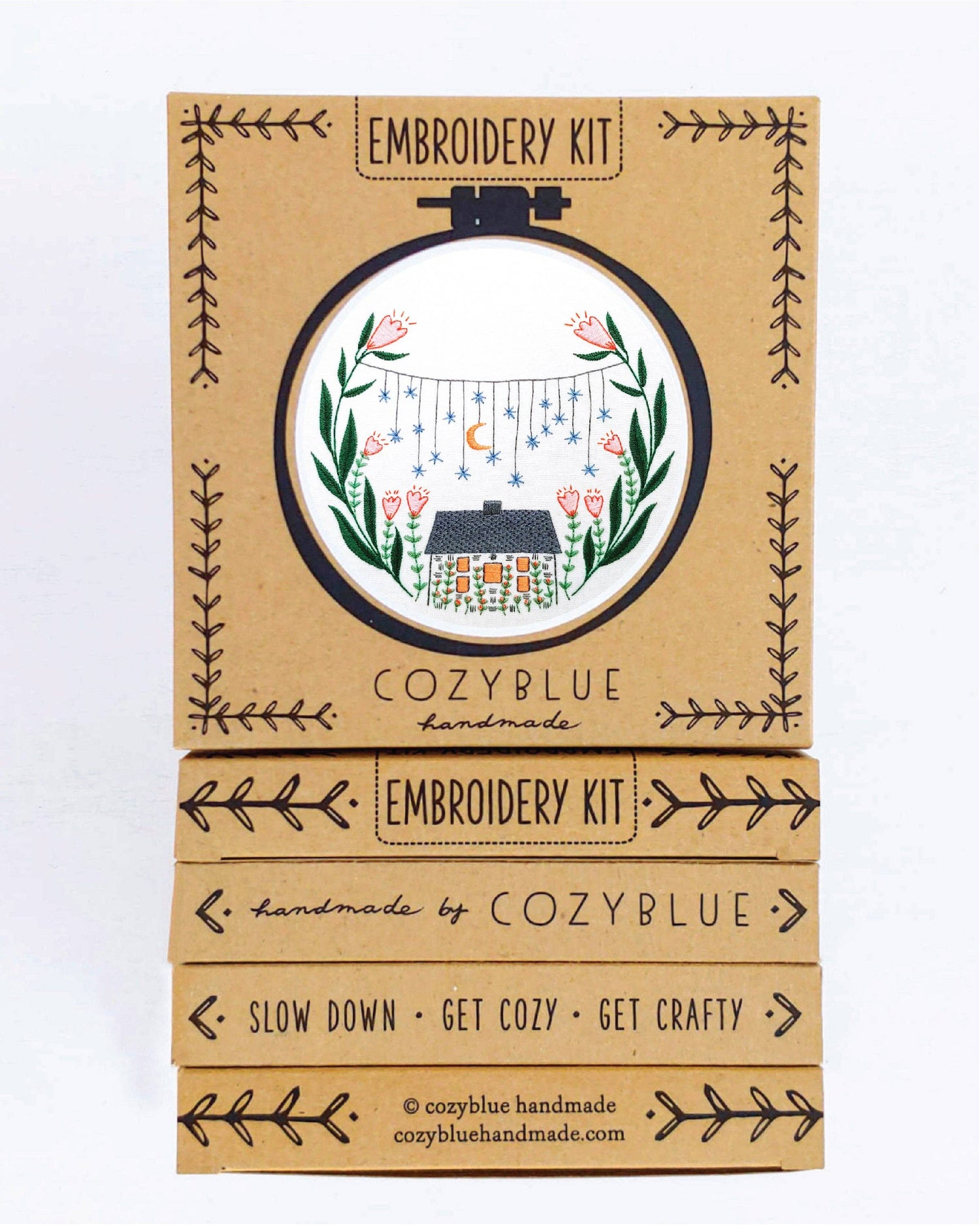 cozyblue embroidery kits include everything you need to create your own hand embroidered hoop.