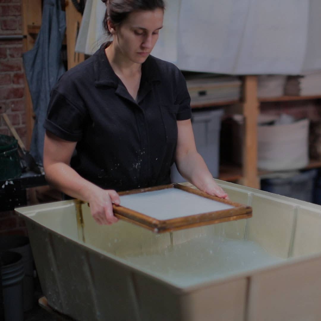 This versatile paper is made from the perfect blend of abaca fibers and cotton rag. The color is achieved through natural pigments. The edges are natural deckled edges on all four sides - evidence of the ancient papermaking process I follow today, as I create each sheet individually by hand, in my studio in Kansas City, Missouri.