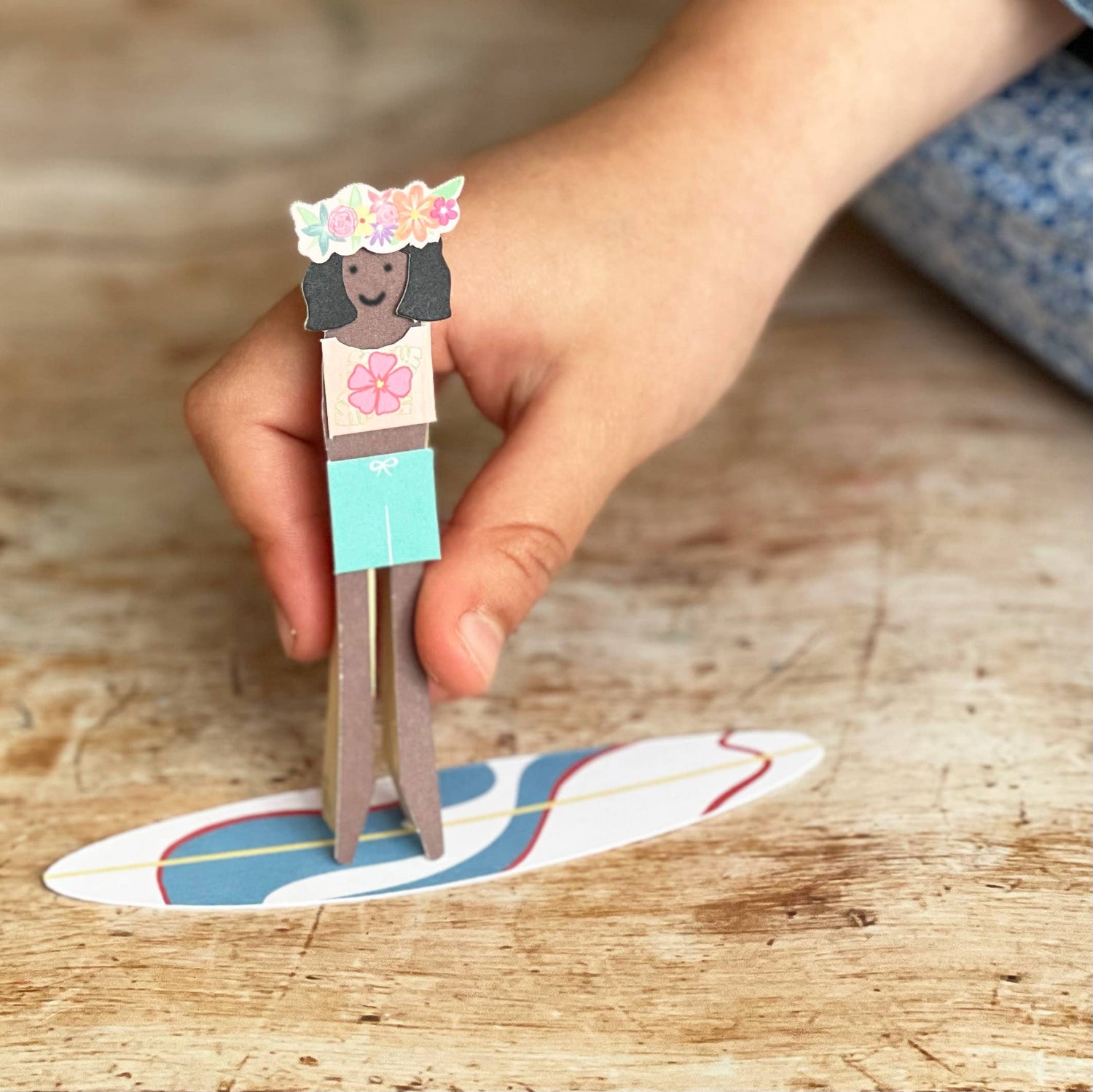 Children love to craft & create, & this surfer peg doll is no exception. Not only a fun activity, this peg doll also sparks imaginative play. The surfer comes with a choice of tops, a pair of shorts, hat, flower crown, surfboard and the perfect wave to ride, together with a choice of skin tones & hairstyles for further personalization. • Recommended for ages 3+ • Sustainable eco-friendly materials • Promotes fine motor skills • Perfect for till point add-ons • All materials provided • Ideal for party favors & stocking fillers