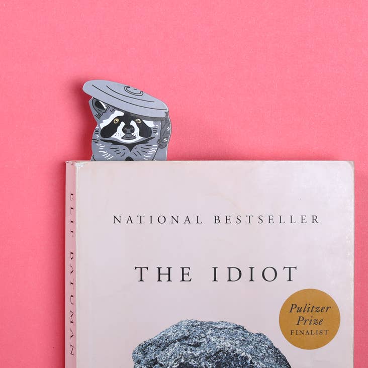 It's a raccoon in a trash can in a book! Bookmarks are underrated... until you have a trash panda sticking out of your very serious non fiction book.