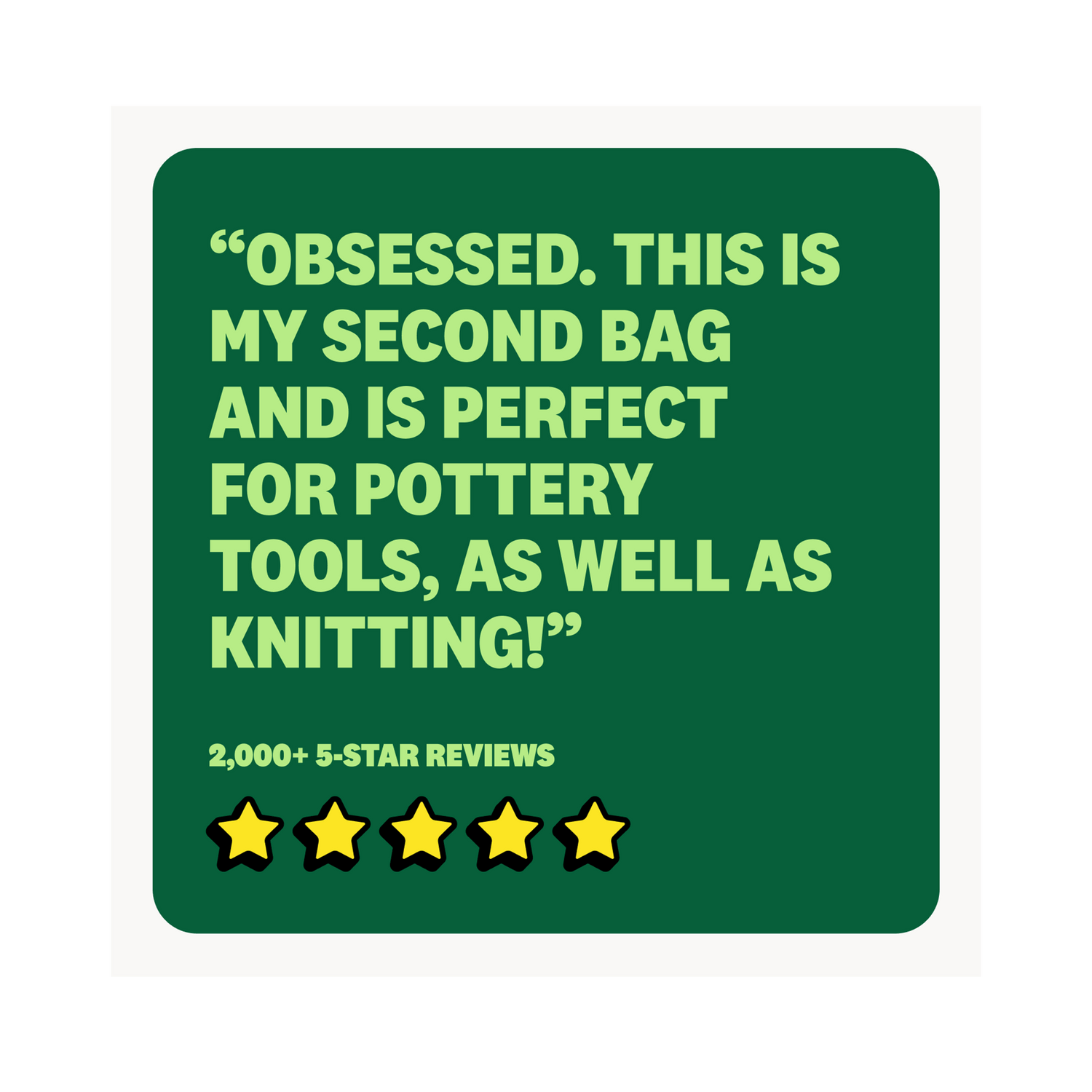 Soolla® Studio Bag Collab Series: Hope Limyansky Edition Every artist deserves a workspace that sparks creativity. The Soolla® Studio Bag keeps your tools organized, so your creative energy flows uninterrupted. 🌈 Over 30 Pockets Of Varying Sizes 🌈 Slanted Skinny Pockets : For your most-loved tools that beg for your attention (carving tools, knitting needles, crochet hooks 🌈 Large Interior Storage + 2 interior pockets: Perfect for carrying glazes, knitting yarn, crochet supplies, and craft supplies 🌈 Phone & Wallet Compartment 🌈 Durable Canvas: Water resistant & machine washable 🌈 Padded Handles: Look good and feel good while showing the bag off to the world 🌈 Reinforced Bottom: Nobody likes a drunk bag that can’t stand up 🌈 Hand Assembled