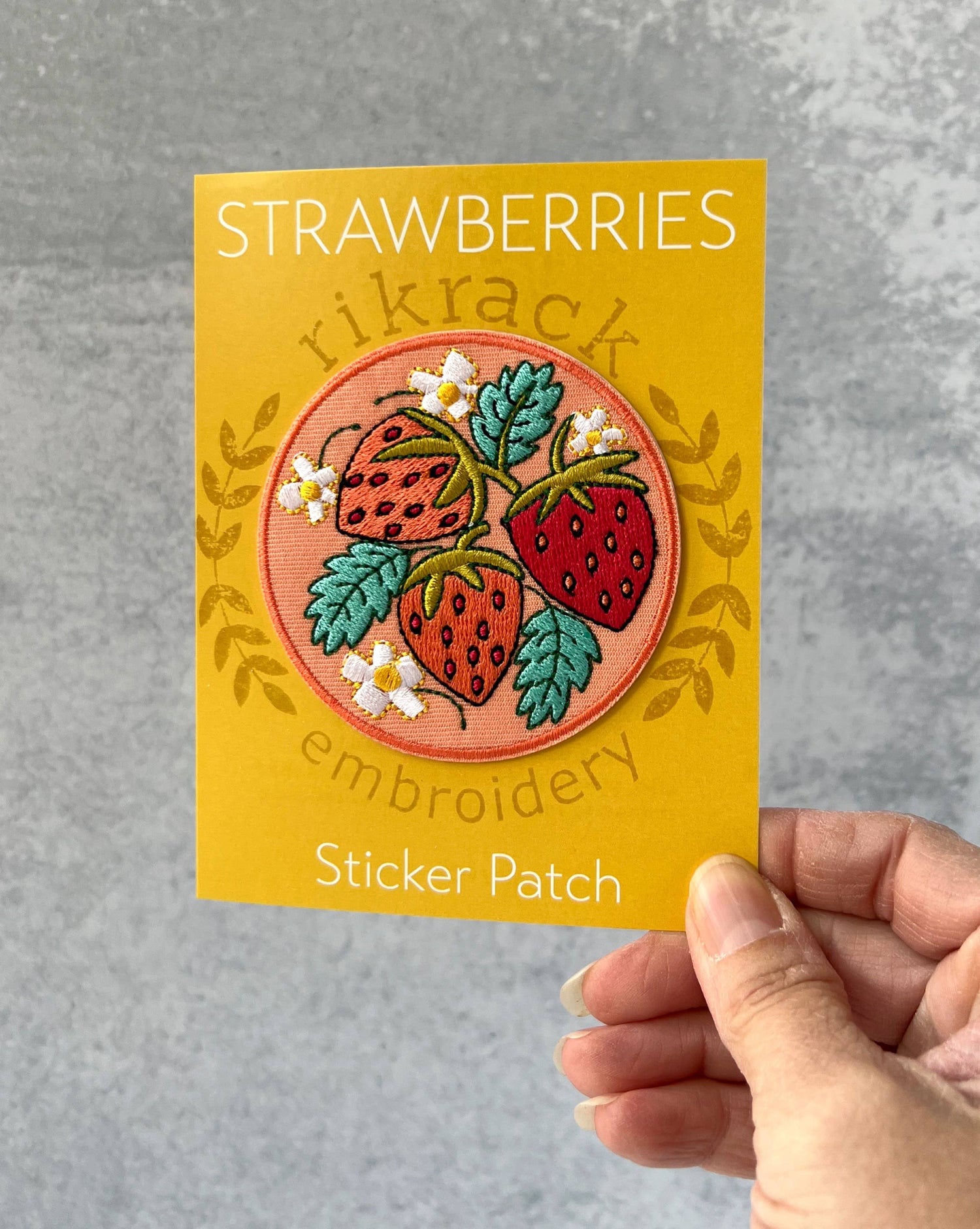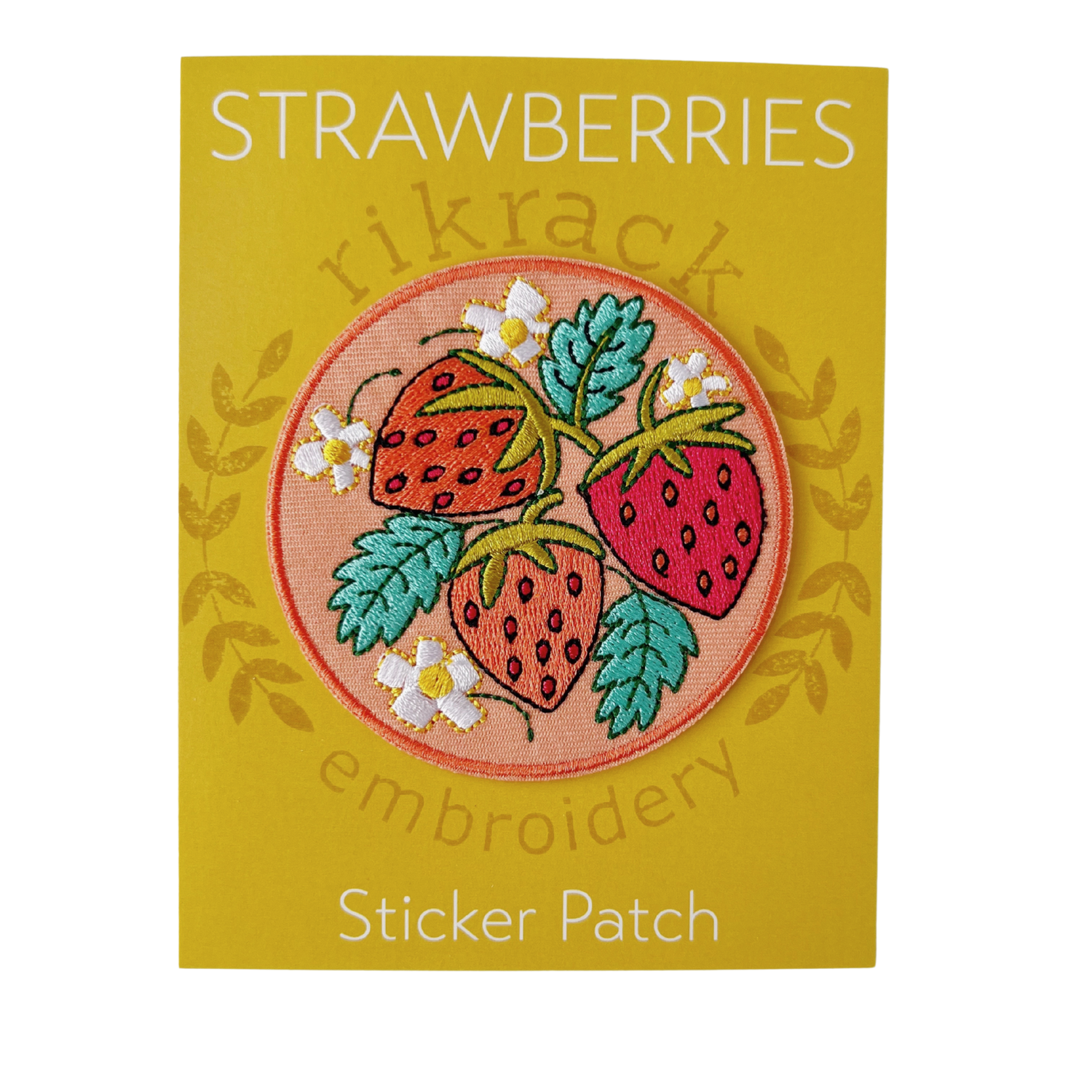 Strawberries and blossoms embroidery sticker patch. Super detailed embroidered pink and read strawberries. Embroidered sticker patch is 3 inches with finished stitch edge. Packaged on paper backer in a poly sleeve. You can easily peal off the back and stick your patch anywhere. No need to sew!