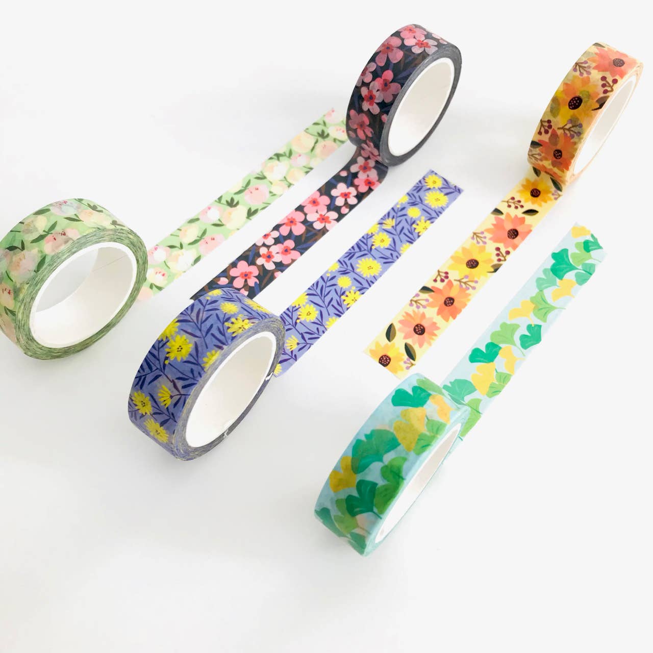 This tape features sunflowers set in autumnal colors. These 15 mm wide rolls pack a punch with their striking designs and color, not to mention their eye-catching packaging makes them the perfect gift for all crafters and DIYers.