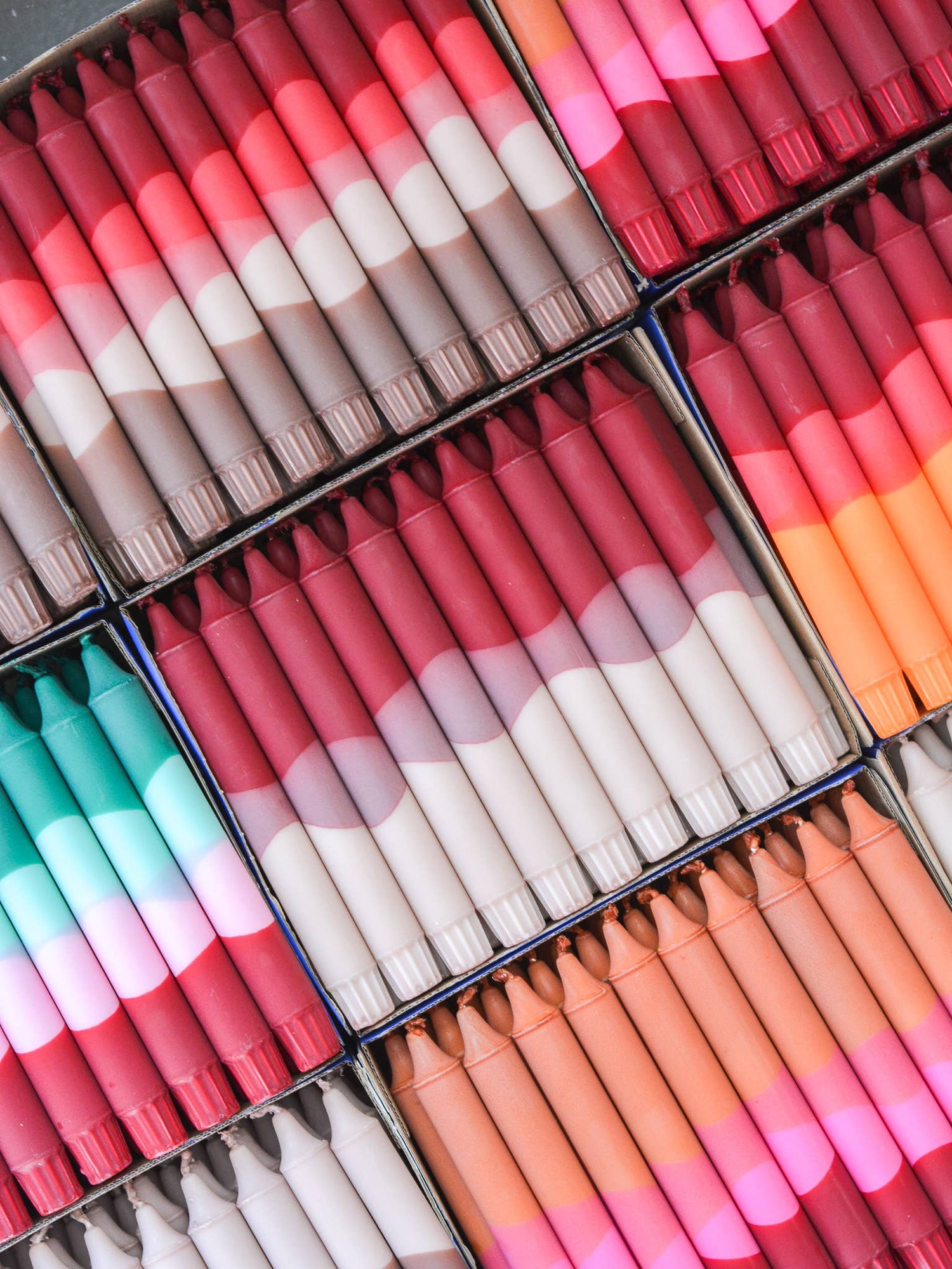 Made and designed with Scandinavian style in Copenhagen, Denmark by Nordtrice Candles, these taper candles serve as a gorgeous addition to any tablescape. Photos show a sample of the colors, but expect variation candle to candle.