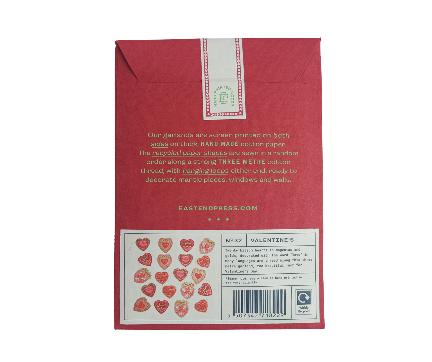 3 metres long - Includes 10 paper shapes, sewn along strong cotton thread - Screen printed by hand on both sides by talented artisans in Jaipur - Sustainably made from recycled materials