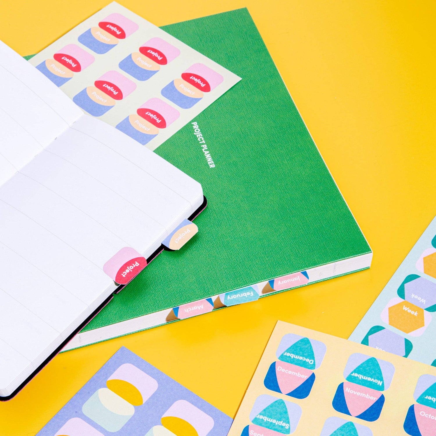 A tabbed page is an organized page. Use these newly updated sticker tabs on the pages of your Concept Planner, Project Planner or any other sheets that you want to categorize, and you'll never lose your spot again. * Includes four sheets of sticker tabs (months, week, project, and blank)