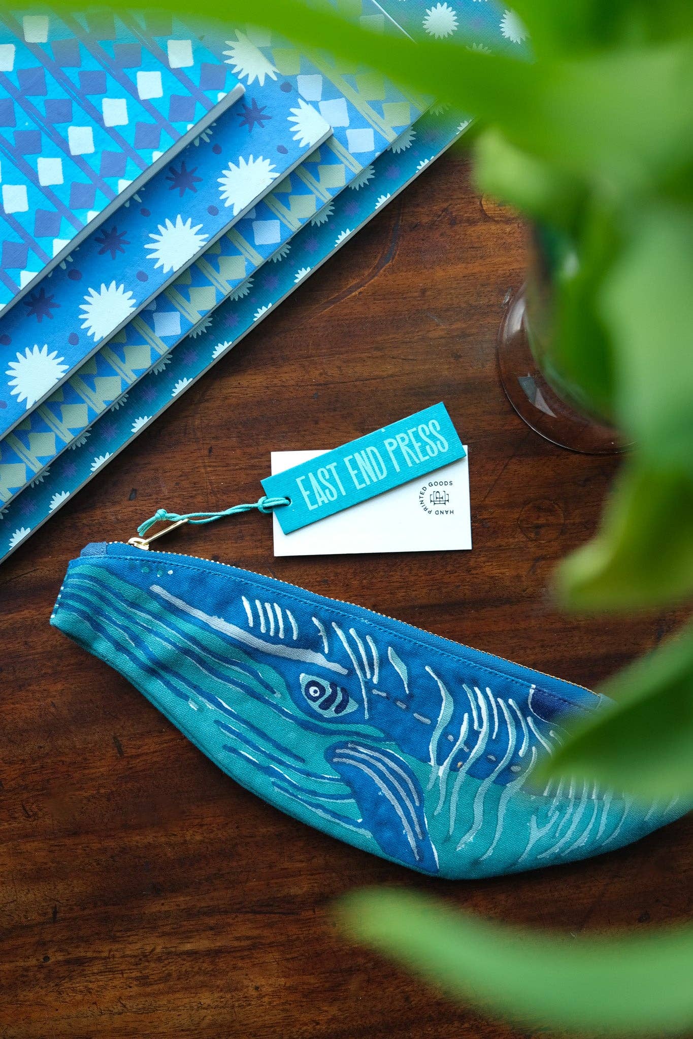 This beautiful pouch is shaped like a Whale and is entirely hand printed from carved wooden blocks!
